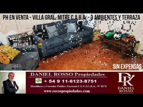 PH en Villa General Mitre 3 ambientes mas terraza propia, quincho con parrilla y una edificacion de 2 ambientes con baño.-<div><br></div><div>NO PAGA EXPENSAS.</div><div><br></div><div>Se trata de un PH al fondo sin expensas.- </div><div>Living comedor de diario amplio.-</div><div>El mismo dispone de una distribucion con subida a la terraza.-</div><div>Baño completo.-</div><div>Cocina con alto y bajo mesada amplia.-</div><div>Dormitorio principal amplio.-</div><div>2º dormitorio o sala de juegos amplio.-</div><div><br></div><div>En planta alta cuenta con un quinco con parrilla.-</div><div>Terraza.-</div><div>Ingreso a pequeño depto de 2 ambientes con baño.-</div><div><br></div><div>Todo en buen estado.</div><div><br></div><div>Esta ubicado a 1 Cuadra Jonte, 3 cuadras Av. San MArtin, 5 cuadras Av. Juan B. Justo.</div><div><br></div><div>Transportes Cercanos</div><div>Colectivos: 24, 44, 47, 57, 63, 105, 109, 110, 113, 133, 135, 146</div><div><br></div><div>llamame al wsp y concretamos una visita...!!!</div><div><br></div><div>Propiedad apta para personas con discapacidad</div><div><br></div><div><br></div><div><br></div> <br>